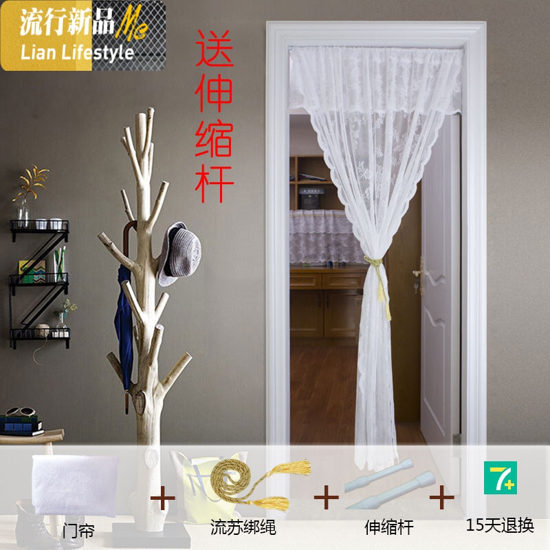 韩式蕾丝纱帘卧室厨房魔术贴装饰布艺隔断帘子半帘家用帘免打孔三维工匠 100【适用门宽】X150【帘高】 穿杆式单开+帘头【收藏送伸缩杆¥81.00热销中 -