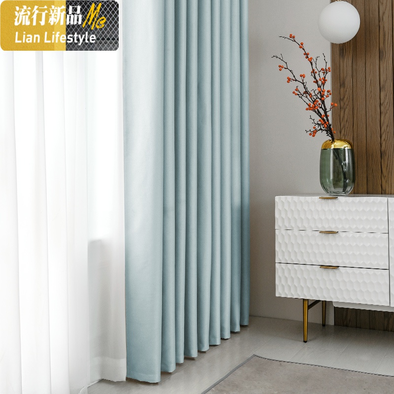 现代简约2020新款客厅落地纯色窗帘布卧室99%全遮光飘窗高档定制三维工匠 【四角挂钩款】宽2.0*高2.7米一片(免费改短) 湖水蓝-80%遮光¥234.00热销中 -