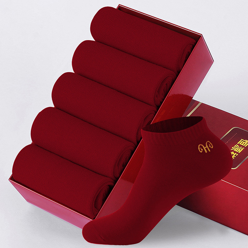 恒源祥男女士酒红色船袜情侣本命年结婚喜庆福袜子隐形袜 均码 男袜福字5双¥39.00热销中 -