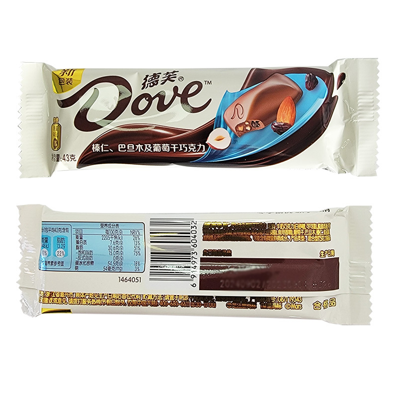德芙Dove香浓黑巧克力经典牛奶巴旦木榛仁巧克力白巧克力43g零食品 仁巴旦木葡萄干巧克力 43g*12条(整盒)¥95.00热销中1评价 100.0%好评