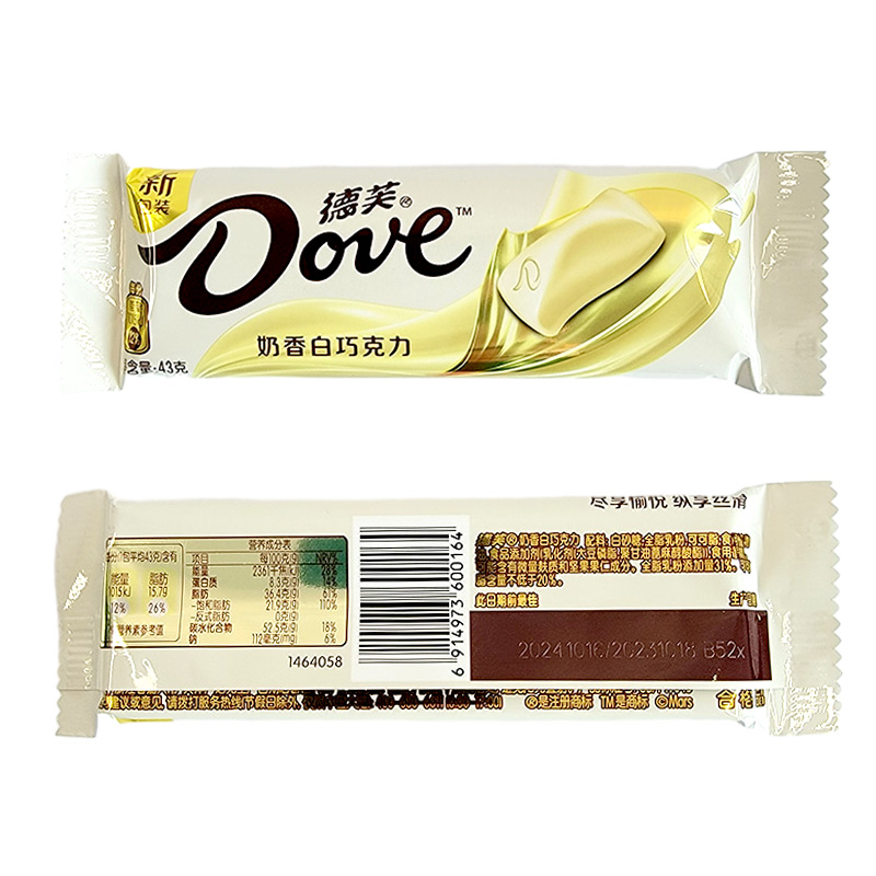德芙Dove香浓黑巧克力经典牛奶巴旦木榛仁巧克力白巧克力43g零食品 43g*1条 奶香白巧克力¥10.90热销中