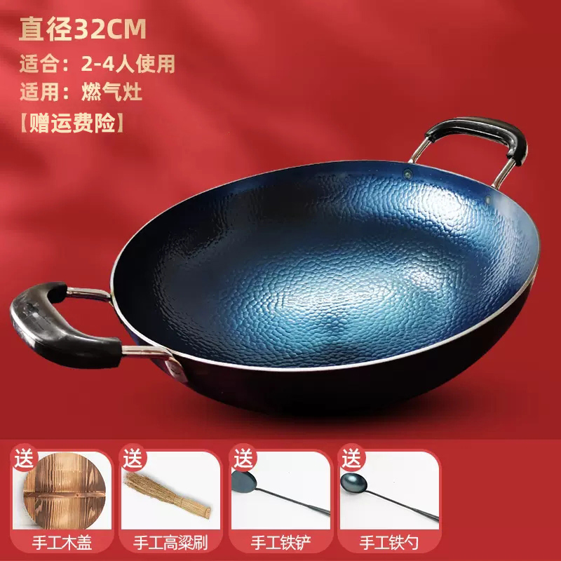 章丘双耳铁锅 32cm双耳鱼鳞锅+四件套¥238.00热销中 -