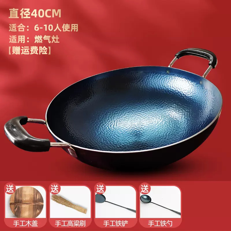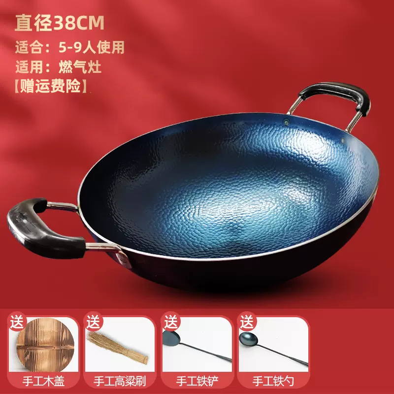 章丘双耳铁锅 38cm双耳鱼鳞锅+四件套领券满200用40¥348.00热销中 -