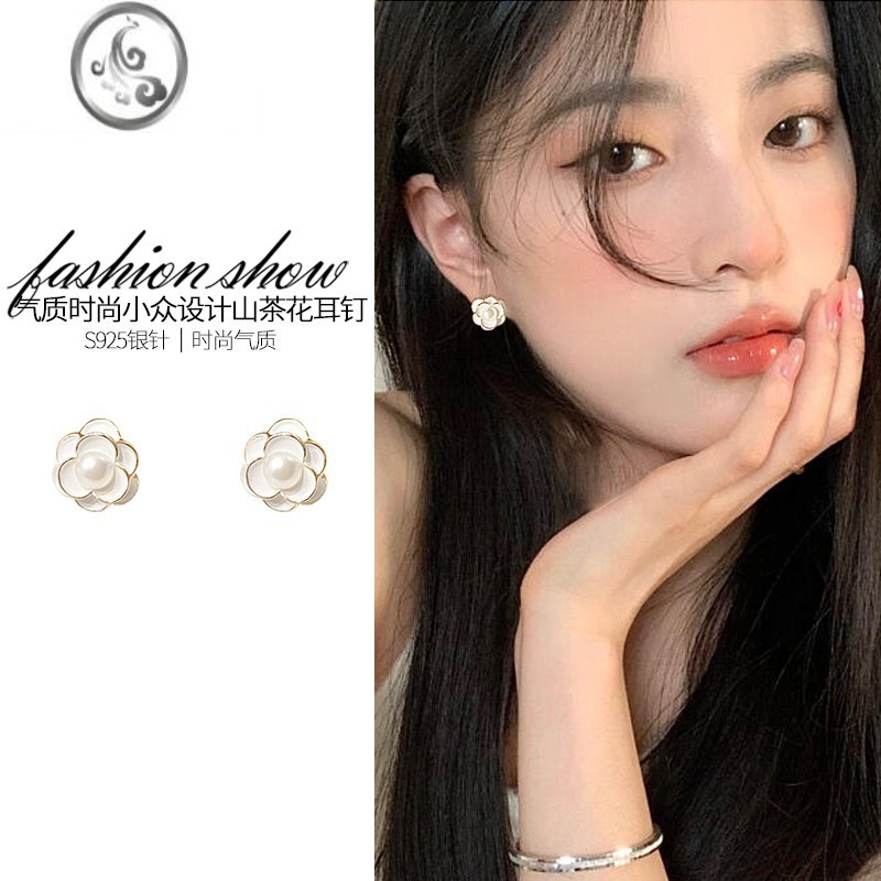 JiMi山茶花耳钉复古港风2023新款小众高级感银银气质珍珠耳环耳饰 山茶花耳钉S925银针¥20.00热销中 -