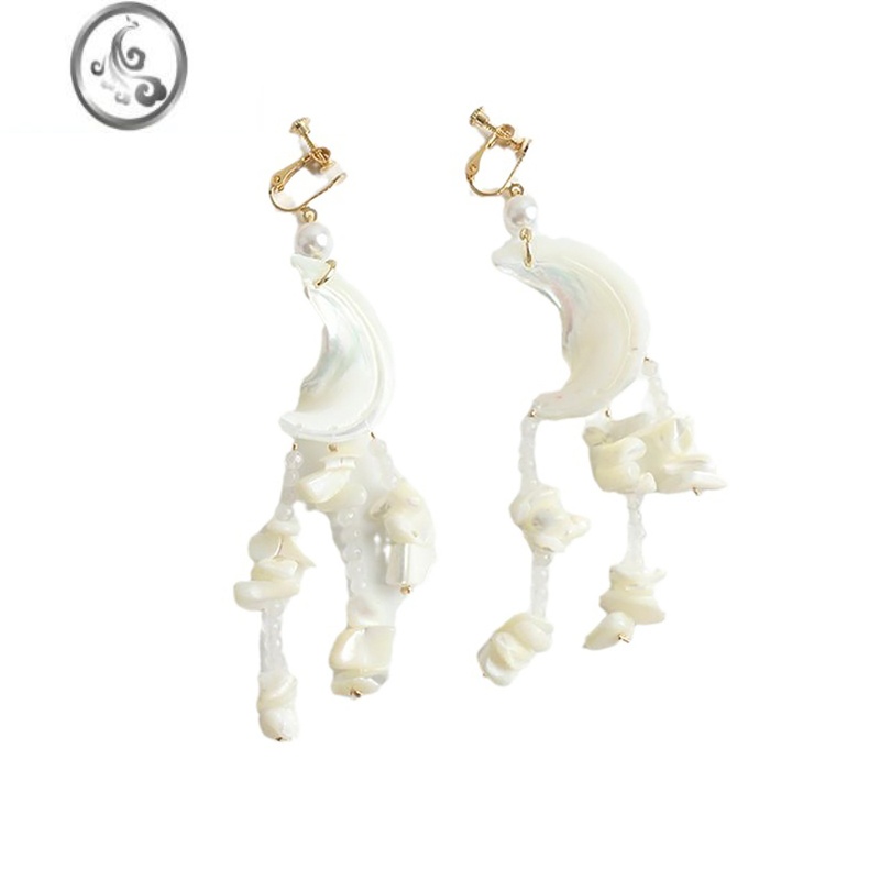 JiMi海边度假风贝壳月牙耳环女小众高级手工串珠长款流苏耳夹耳i 白色贝壳耳夹无耳洞佩戴¥76.00热销中 -