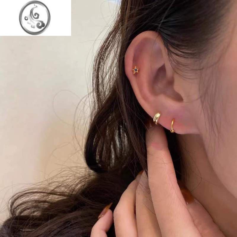 JiMi999银耳钉女养耳洞素圈耳圈2023新款高级感耳骨耳环耳饰耳扣 S925银6mm+12mm各一对¥45.00热销中 -