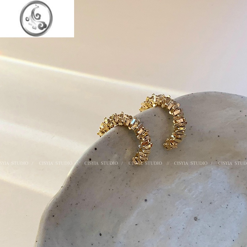 JiMi碎银子耳环女轻奢小众设计耳钉2023年新夏简约百搭耳饰高级饰 碎金子C型耳环¥22.00热销中 -
