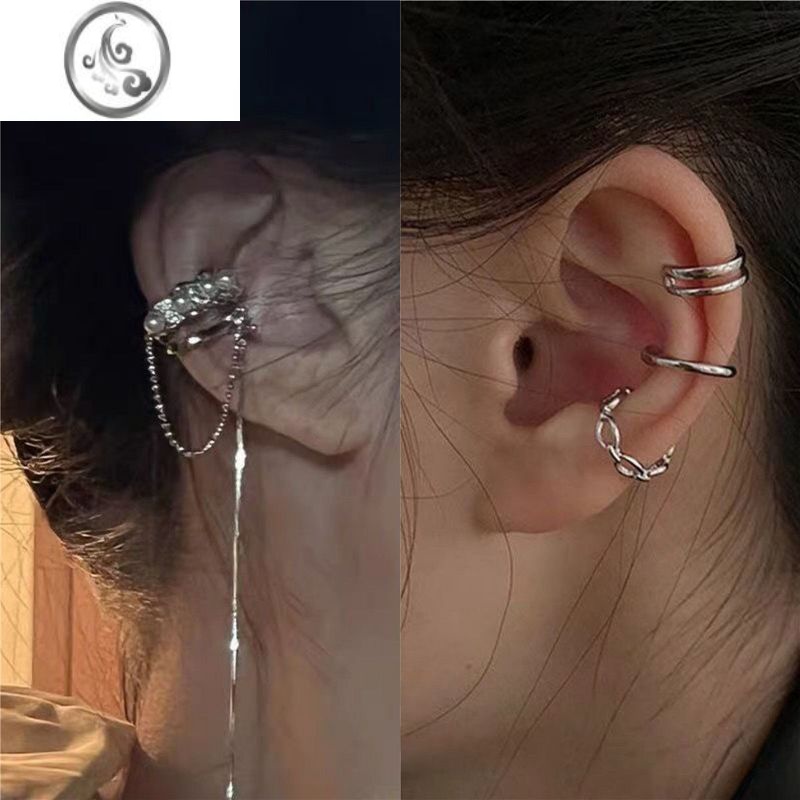 JiMi法式轻奢耳骨夹长款珍珠流苏无耳洞耳夹女小众设计高级感气质耳环 单排珍珠流苏+简约耳夹2套¥13.00热销中 -