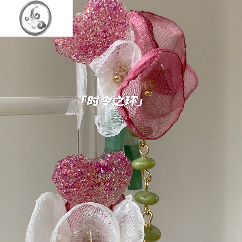JiMi时令之环|花荣碧石 原创玫红色花朵夸张彩色耳环绿色玉石耳夹耳饰 花荣碧石螺旋耳夹¥88.00热销中