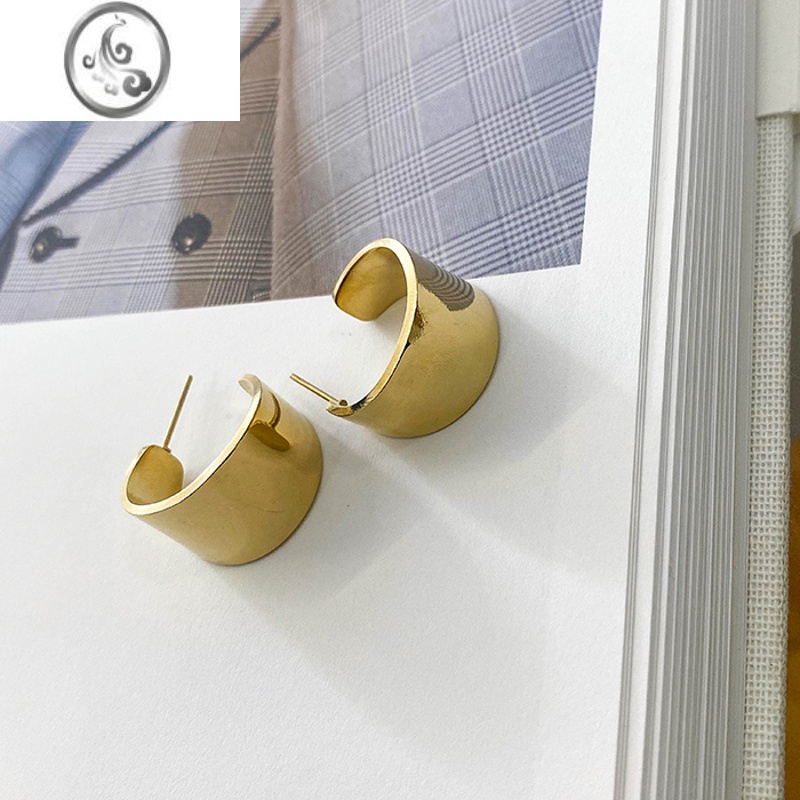 JiMi欧美宽面金属潮耳圈钛钢保色耳环女简约时尚气质百搭秋冬个性耳饰 B金色¥40.00热销中 -