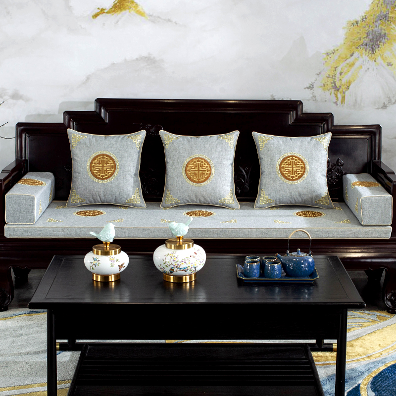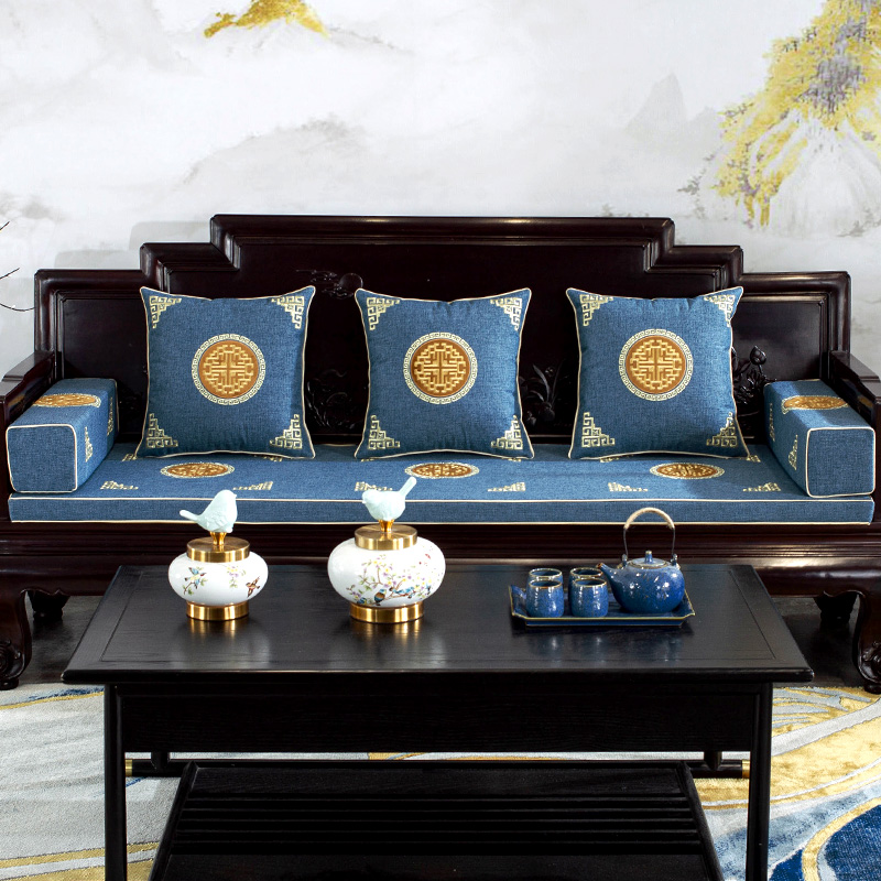 京城派 新中式红木沙发坐垫四季通用椅垫防滑实木海绵垫罗汉床刺绣古典支持定制 新中式沙发坐垫-蓝色 桌旗:50x120cm【适用桌长0.7-0.8米】¥90.00热销中8评价 100.0%好评