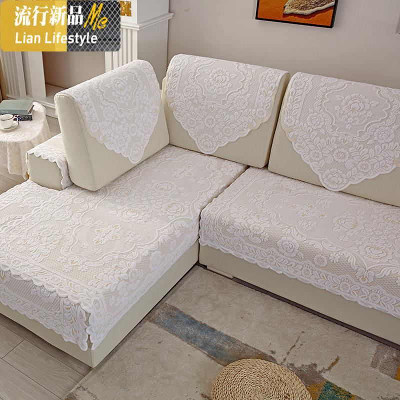 加厚蕾丝纯色沙发靠背巾四季布艺垫防尘扶手巾紧密茶几盖巾三维工匠_474_315 长方巾90*250cm 双色牡丹花¥77.00热销中