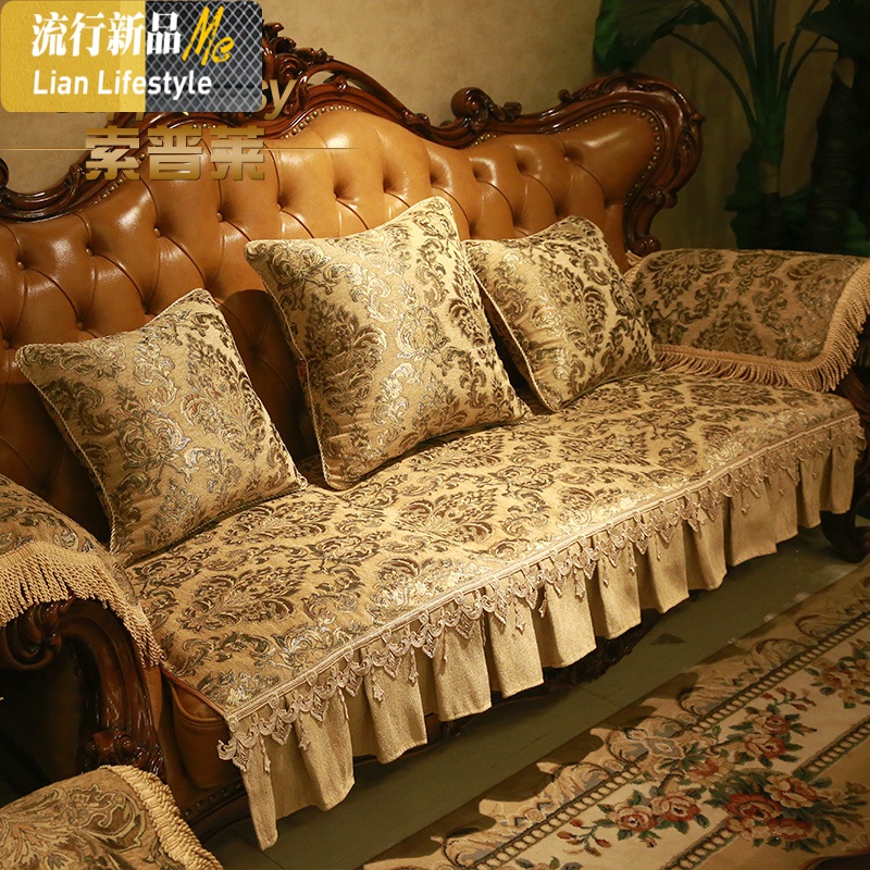 欧式沙发垫套防滑坐垫四季通用高档客厅贵妃组合123皮沙发垫三维工匠_535 单人垫90*75 奢华黄(裙边)¥140.00热销中