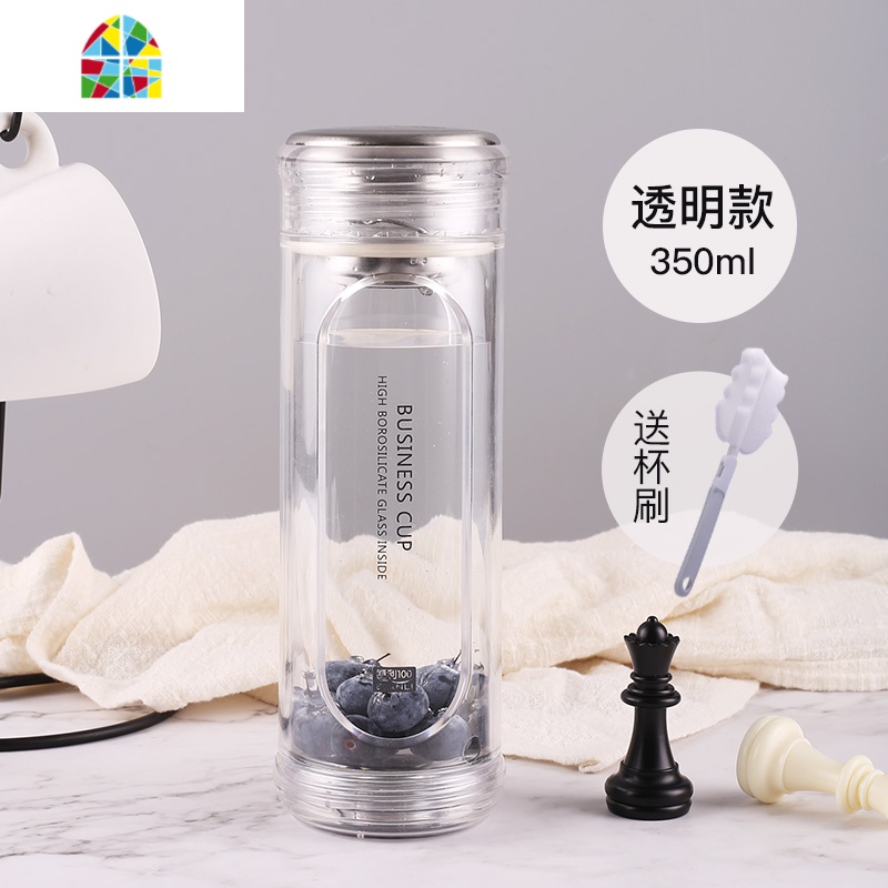 玻璃杯男保温防摔透明水杯家用双层隔热泡茶杯子定制 敬平