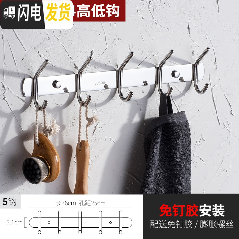 三维工匠挂衣钩304不锈钢免打孔排钩 厨房挂粘钩架卫生间衣服浴室墙壁挂钩 304旗舰版高低钩5钩(买二送一)¥56.00热销中 -
