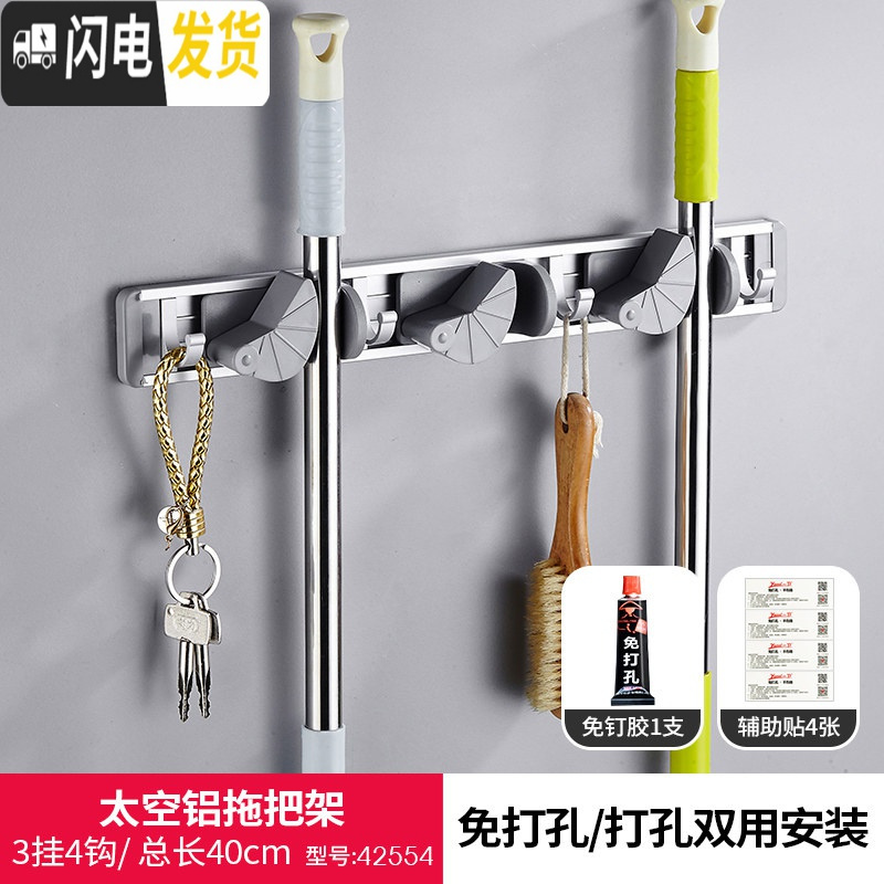 三维工匠拖把架免打孔强力挂钩挂架墩布阳台收纳扫把卡座拖把夹挂拖把神器 42554-太空铝魔术款3挂4钩-升级免打孔¥52.00热销中