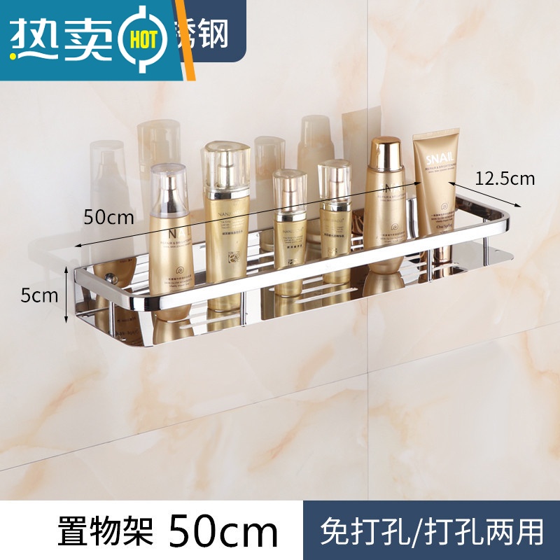 三维工匠卫生间置物架2层免打孔不锈钢304浴室放衣服用品收纳架厕所吸壁式 F款单层50cm【免打孔两用】304加厚¥84.00热销中