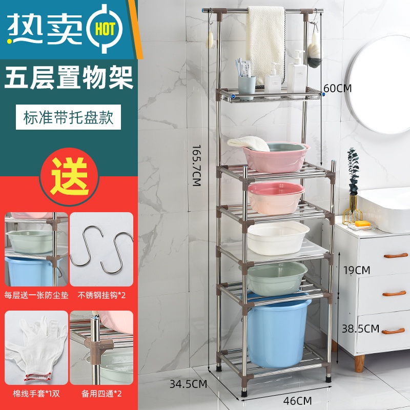 XIANCAI洗脸盆架子多功能落地浴室洗手置物架家用不锈钢卫生间脸盆收纳架 5层【底层加高】带毛巾架+托盘-送5垫+2挂¥140.00热销中