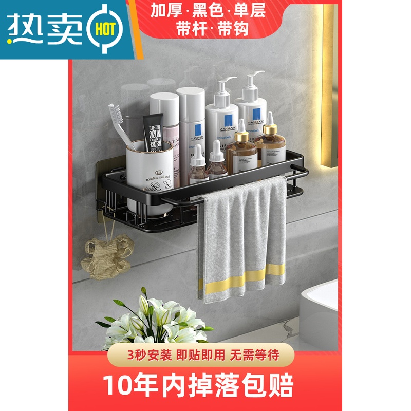 XIANCAI卫生间置物架免打孔枪灰色浴室洗手壁挂洗漱台厕所洗澡间架子收纳 36683-加厚黑色单层带杆带钩¥68.00热销中
