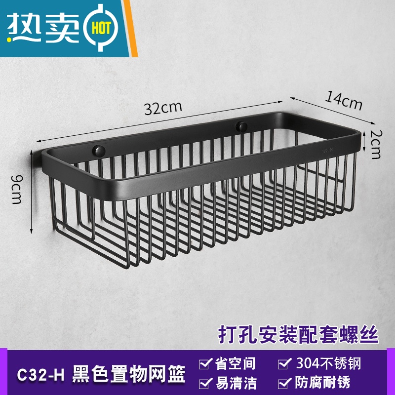 XIANCAI304不锈钢黑色方形置物架浴室淋浴房网篮卫生间洗发水沐浴露壁挂 C32黑色款【打孔】¥162.00热销中