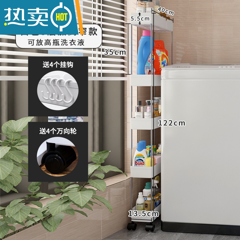 卫生间置物架落地多层厕所浴室洗手间缝隙小推车收纳架厨房夹缝架 常规款-底层增高/加厚【4层】【大桶洗衣液】_221满80元减3元¥167.88热销中