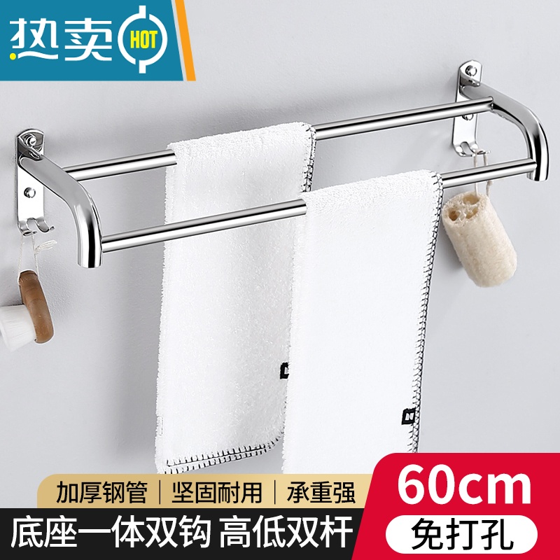 XIANCAI毛巾架不锈钢304免打孔毛巾杆双杆单杆浴室置物架挂件毛巾挂杆 (免打孔/打孔两用)方底座双杆60cm¥101.00热销中