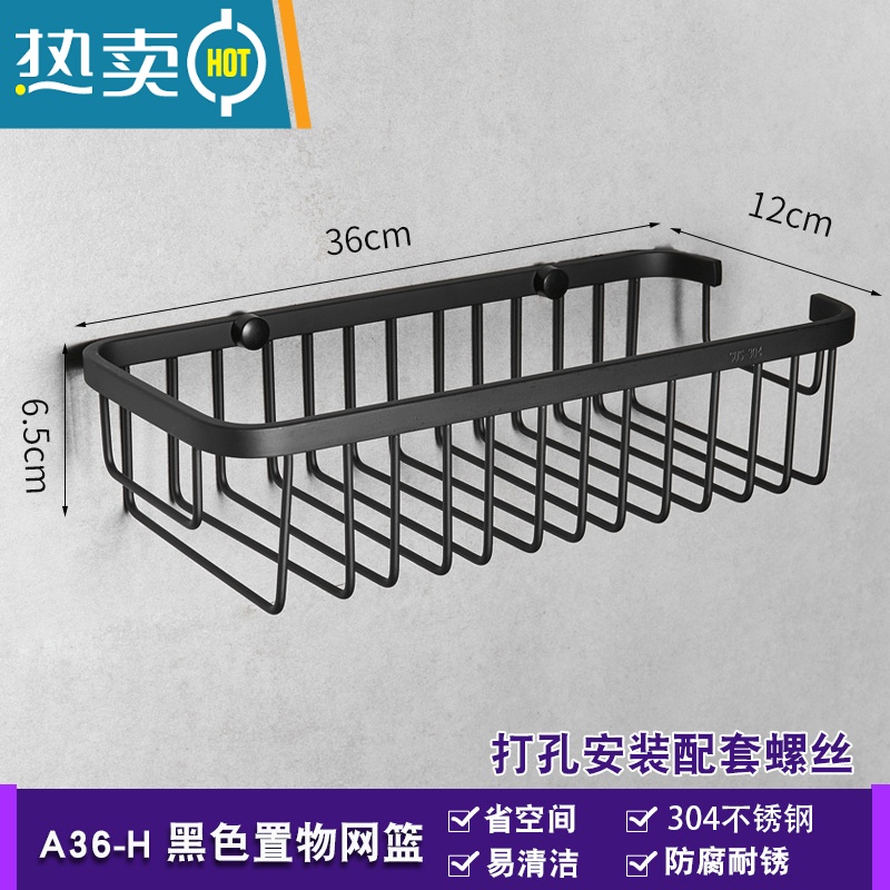 XIANCAI304不锈钢黑色方形置物架浴室淋浴房网篮卫生间洗发水沐浴露壁挂 A36黑色款【打孔】¥126.00热销中