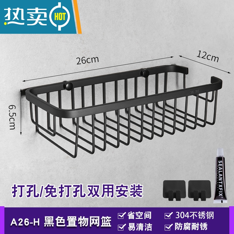 XIANCAI304不锈钢黑色方形置物架浴室淋浴房网篮卫生间洗发水沐浴露壁挂 A26黑色款【打孔/免打孔双用】¥95.00热销中