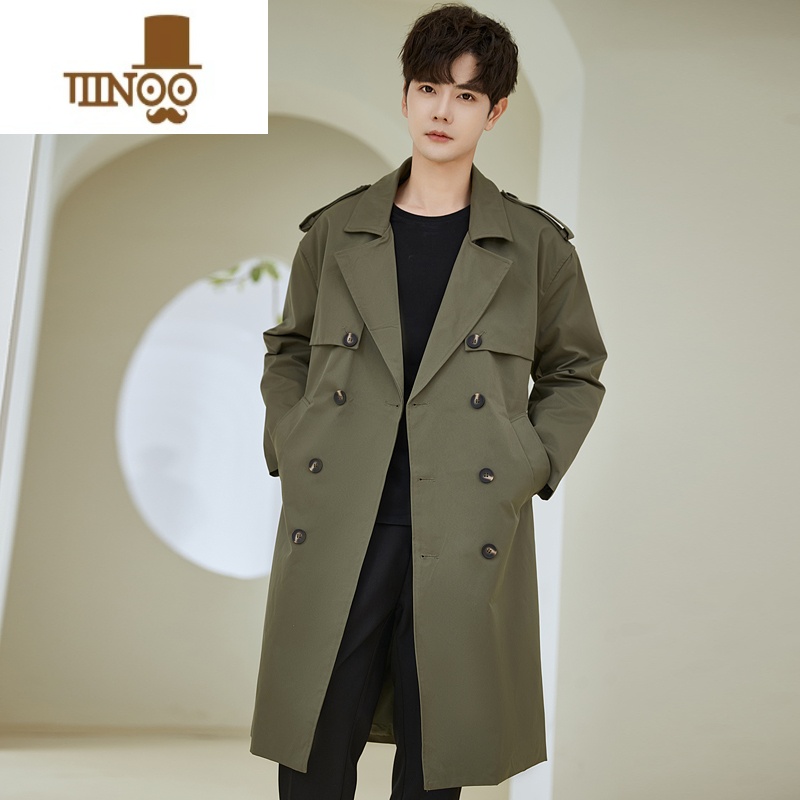 YANXU中长款风衣男士2023新款军绿色轻奢感双排扣西装领外套 L140斤内 军绿色满69元减1元¥448.00热销中