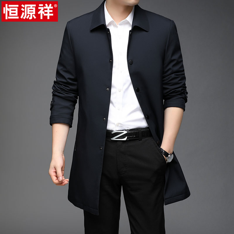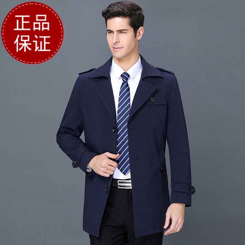 恒源祥男士风衣外套春秋季中长款公务员夹克商务休闲中老年爸爸老 175体重120-140斤 藏青-翻领¥760.00热销中