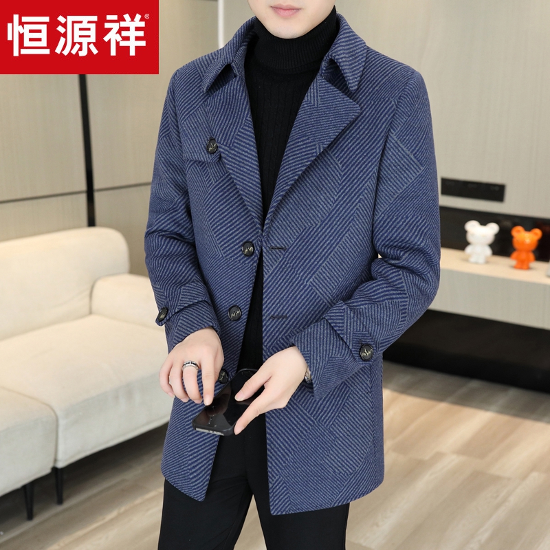 恒源祥秋冬季双面尼大衣男士中长款风衣2024新款高端羊毛呢子外套 L推荐115-130斤 蓝色806¥899.00热销中