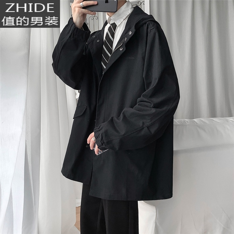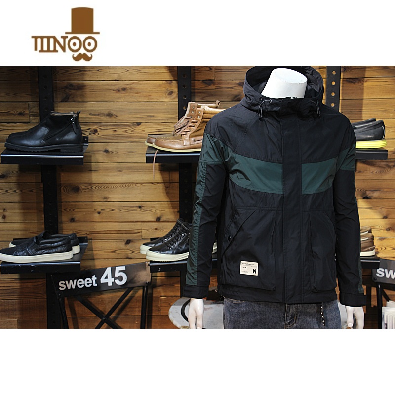 YANXU秋装男连帽风衣外套拼接撞色潮款修身休闲青年带帽夹克工装风休 M 黑色满69元减1元¥356.00热销中