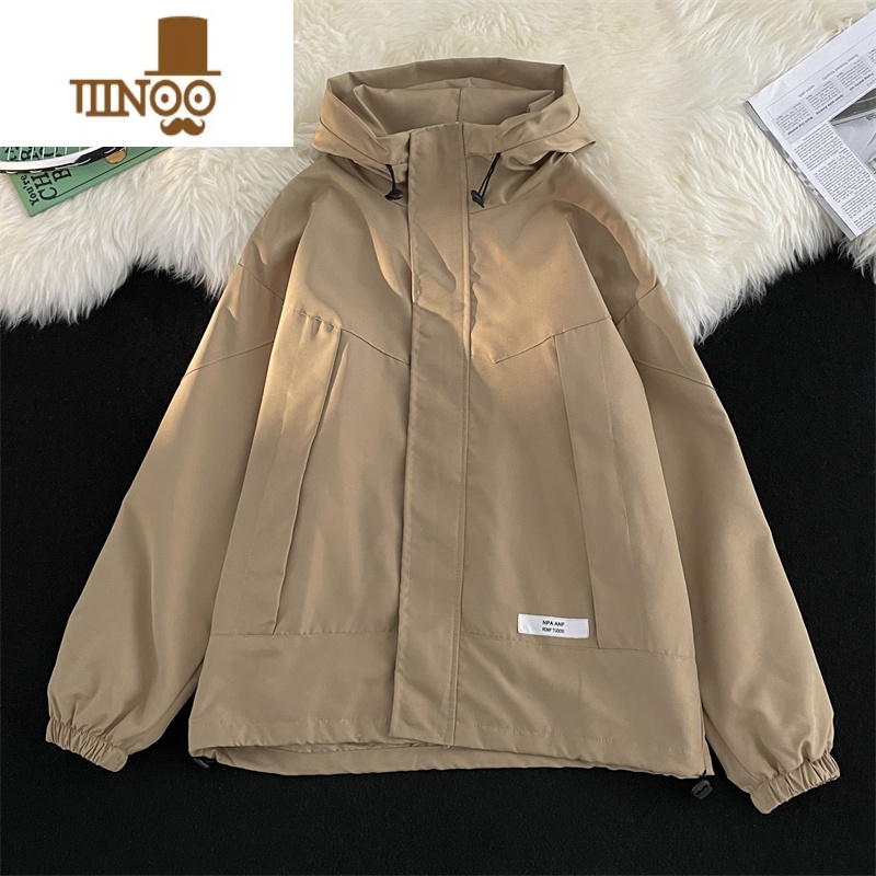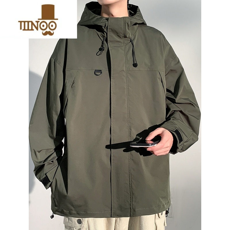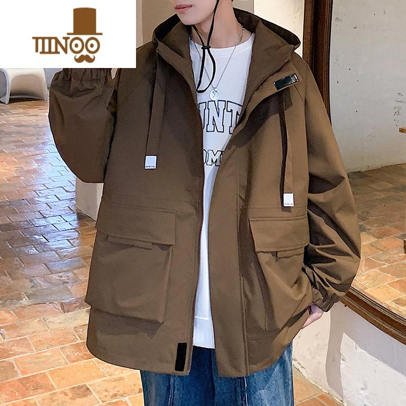 YANXU日系冲锋衣外套男生新款潮牌痞帅上衣服连帽户外防水风衣夹潮 S 棕色满69元减1元¥104.00热销中