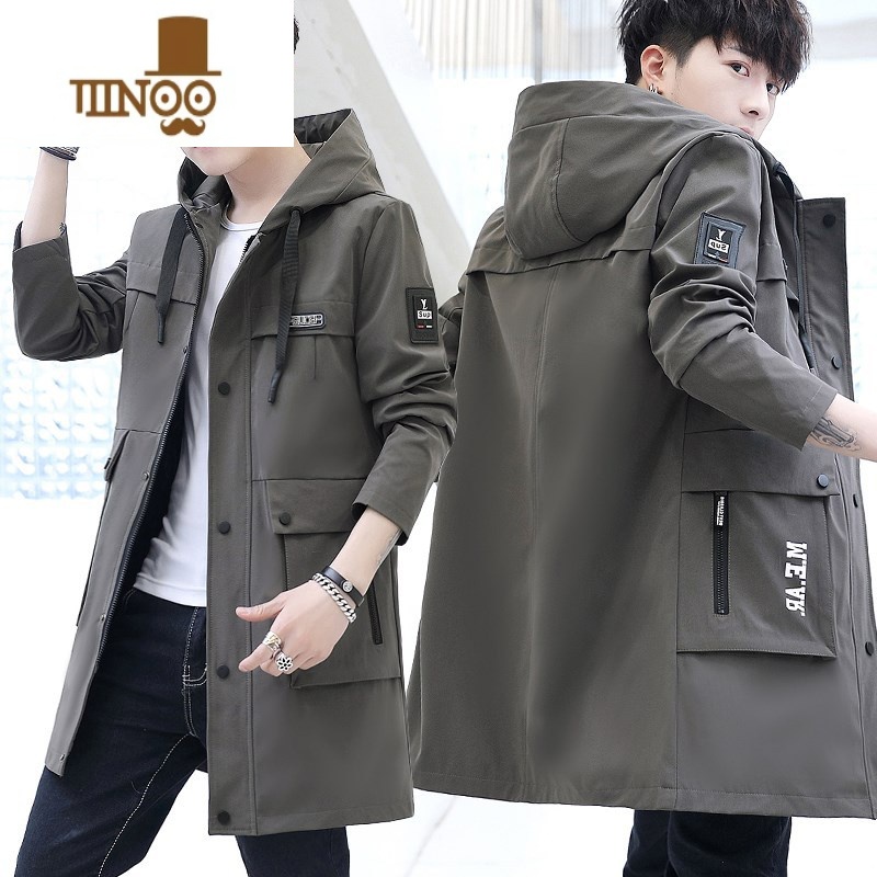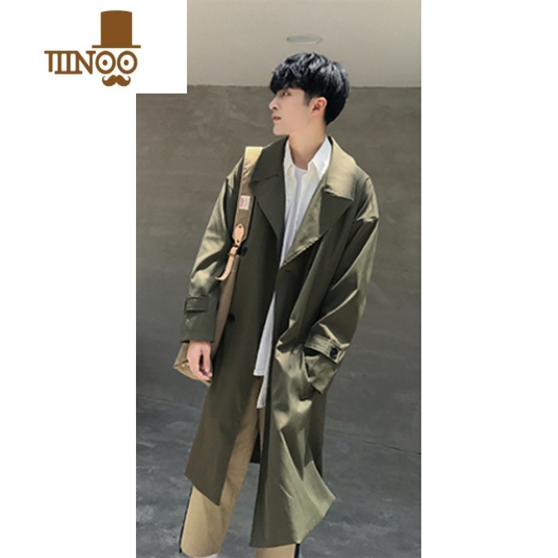 YANXU风衣男中长款外套加长款过膝大衣青少年潮流休闲衣服春季宽松男装 L115至135斤 军绿色满69元减1元¥392.00热销中