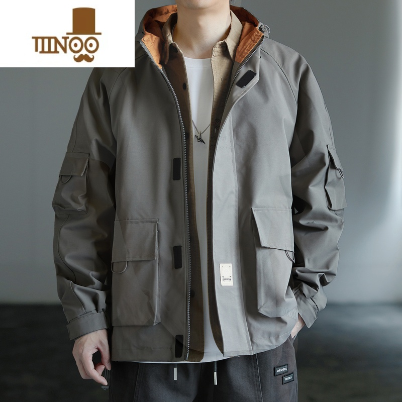 YANXU山系冲锋衣外套男新款潮牌连帽工装夹克男休闲登山防风衣服 S(约80110斤可穿) 23-726咖啡¥212.00热销中