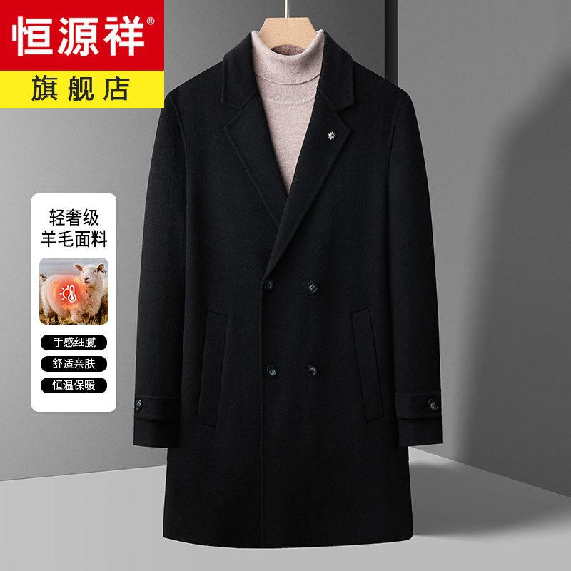 恒源祥秋冬季双面羊毛大衣男长款中老年爸爸装羊毛呢子风衣外款 5XL/195 黑色领券每200用20¥1109.00热销中