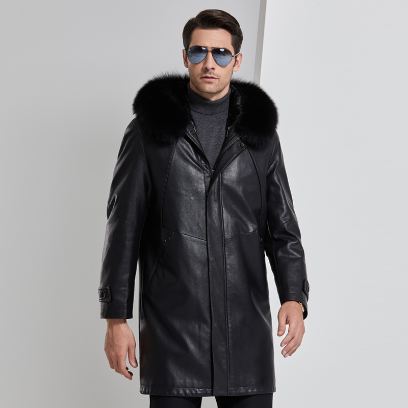 YANXUpu皮风衣男中长款款夹棉加厚外套过膝皮衣大衣感痞帅机车 4XL 黑色加棉里衬¥320.00热销中