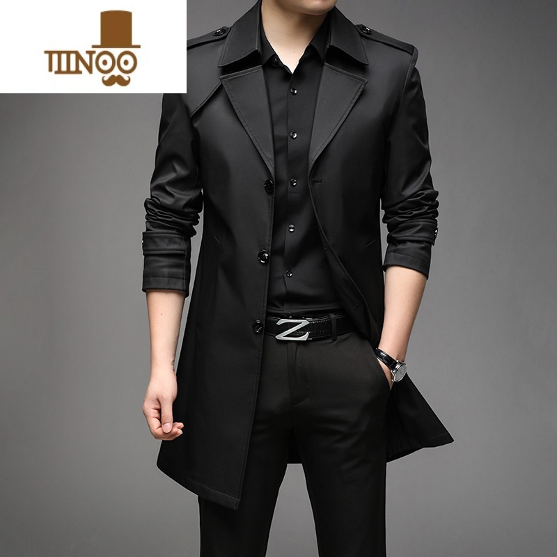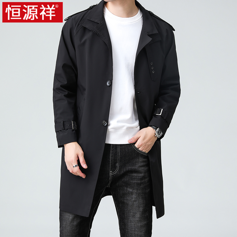 恒源祥风衣外套男中长款2024新款英伦风春秋季装男士长款夹克大衣 170/M推荐体重100-119斤 黑色满100元减5元¥607.00热销中