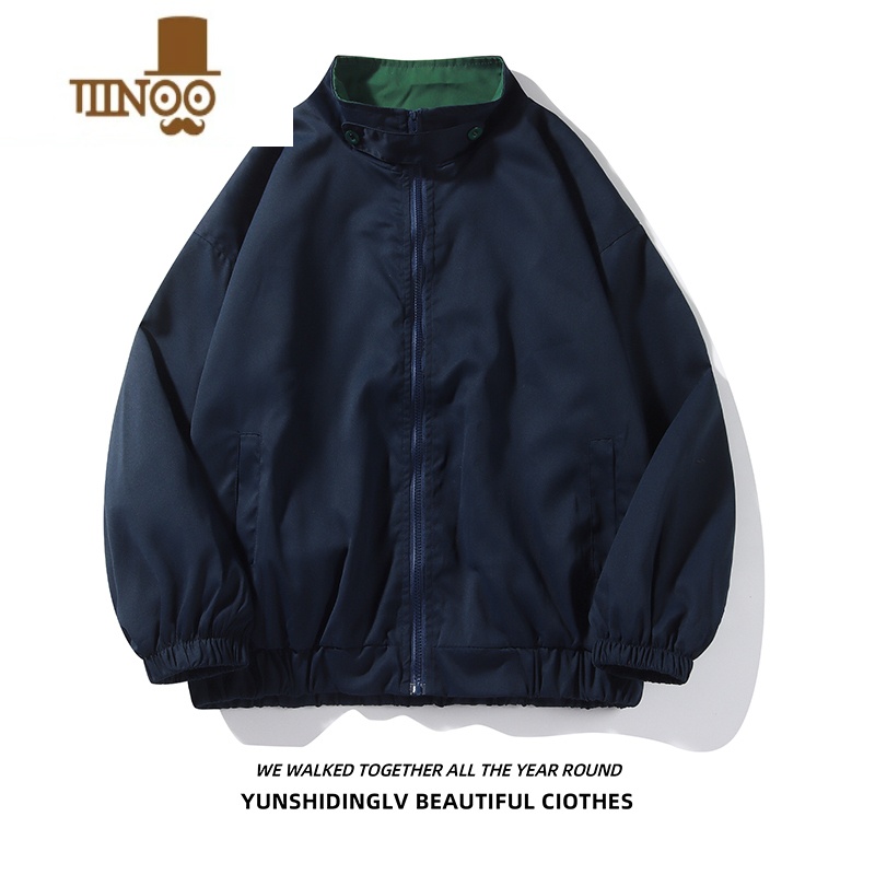 YANXU美式休闲运动夹克衫男生韩版潮流百搭bf潮外穿立领风衣外f 2XL 藏蓝色满69元减1元¥86.00热销中