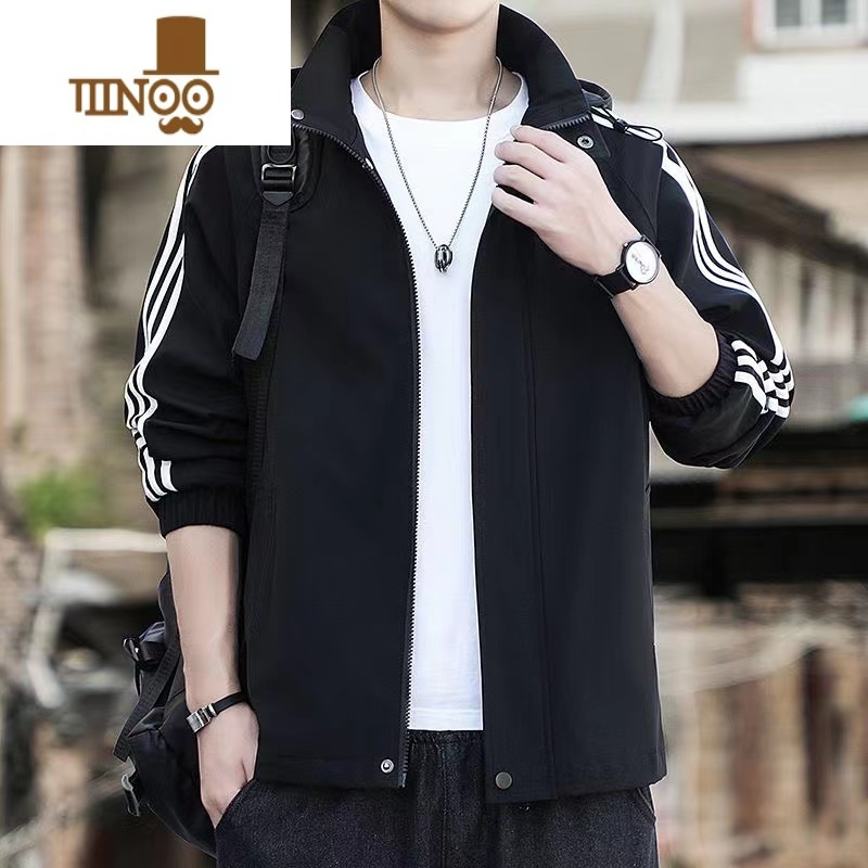 YANXU三条杠连帽外套男士运动休闲工装夹克韩版潮流帅气宽松风衣 XL 黑色RP#1256高质量满69元减1元¥90.00热销中