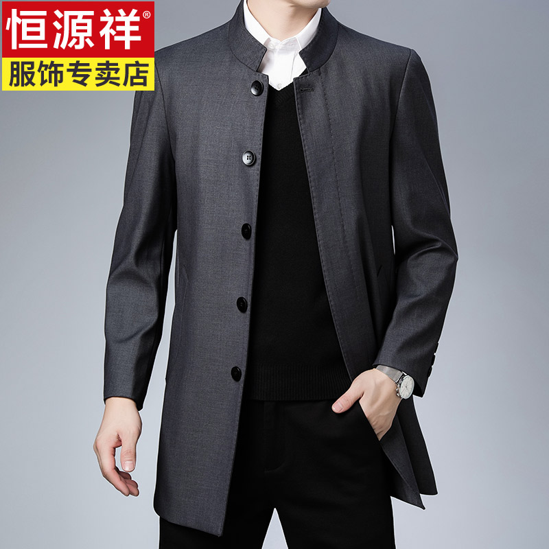 恒源祥中长款风衣男秋季公务员中年爸爸装加大码领导干部立领外套 200 HYXZL1938灰色¥662.00热销中