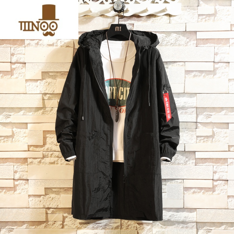 YANXU夏季防晒衣服男士中长款连帽韩版宽松风衣白色披风夏天外套超薄帽 M 黑色满69元减1元¥158.00热销中