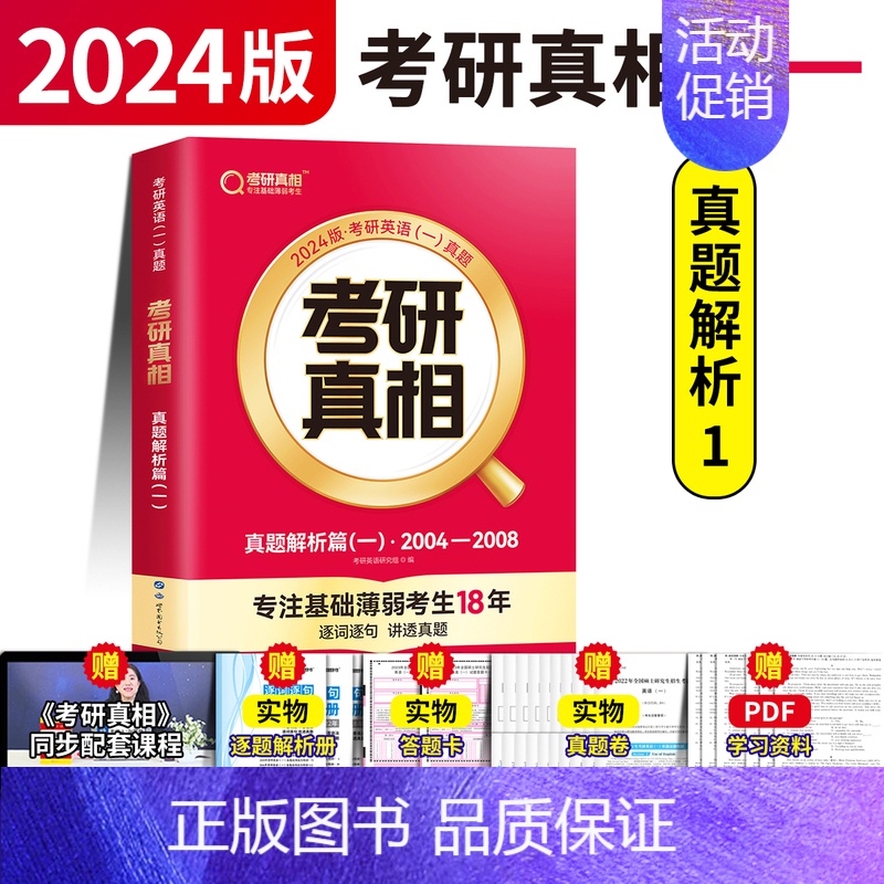 【英一】真题解析一基础篇 【正版】赠16样2024考研真相英语一英语二历年真题词汇真题解析24闪过考研英语单词书搭朱¥123.00热销中