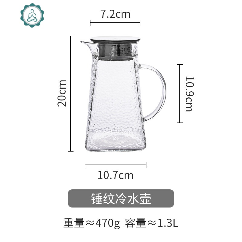 家用锤纹凉水壶玻璃水壶冷水壶凉白开水壶水杯套装 封后 圆形锤纹冷水壶