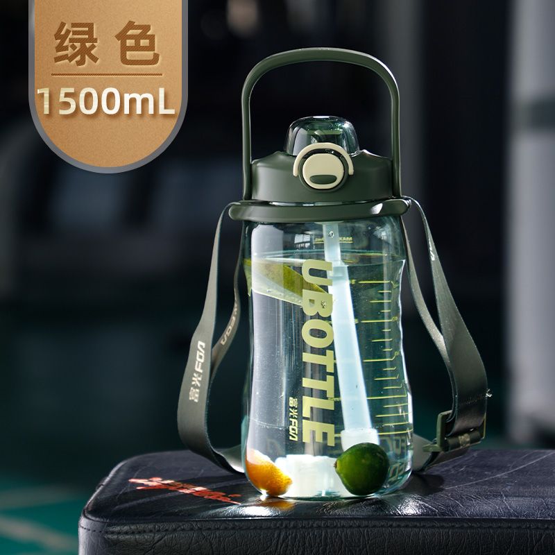 大容量水杯男防摔耐高温塑料运动水壶学生便携吸管夏季刻度杯2l 双饮透绿1500ml加厚 均码满1件打9折¥22.00热销中