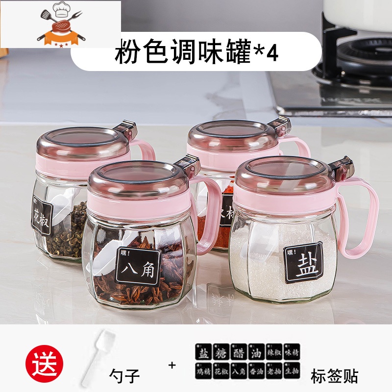 敬平调料盒盐罐调料罐子玻璃调料瓶家用厨房调料组合套装调味罐收纳盒 浅粉3调味罐+底座+杯刷送勺子+标贴纸¥17.82热销中