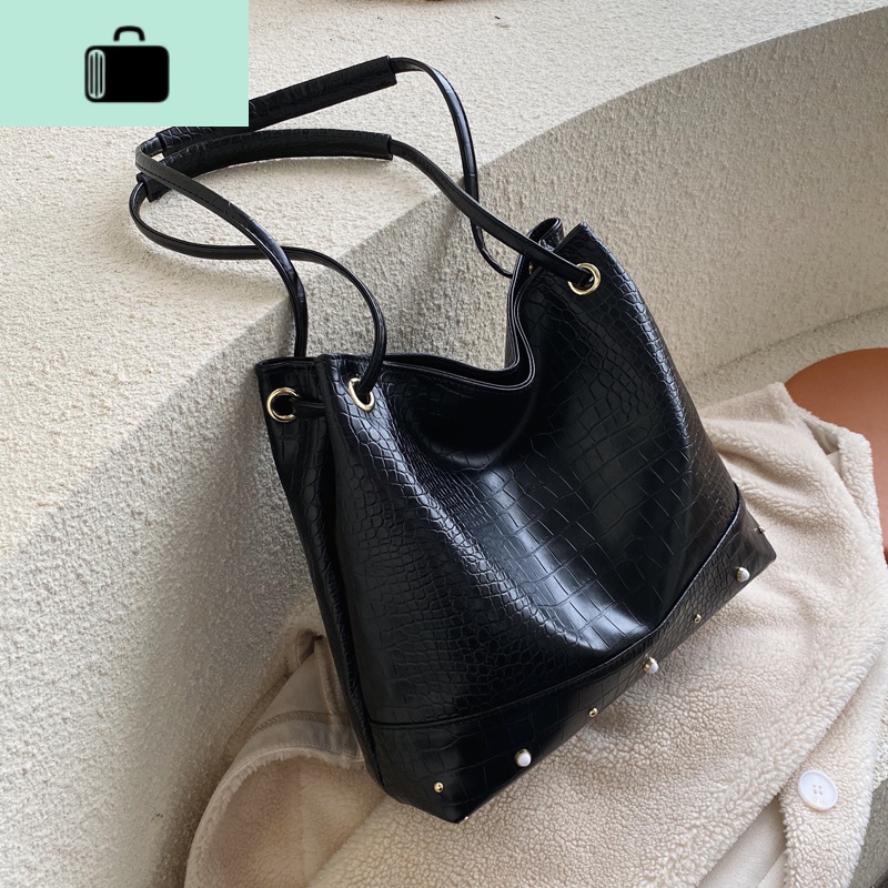 复古港风单肩包大包包女2020新款潮韩版百搭质感斜挎包时尚水桶包NEW LAKE女士单肩包