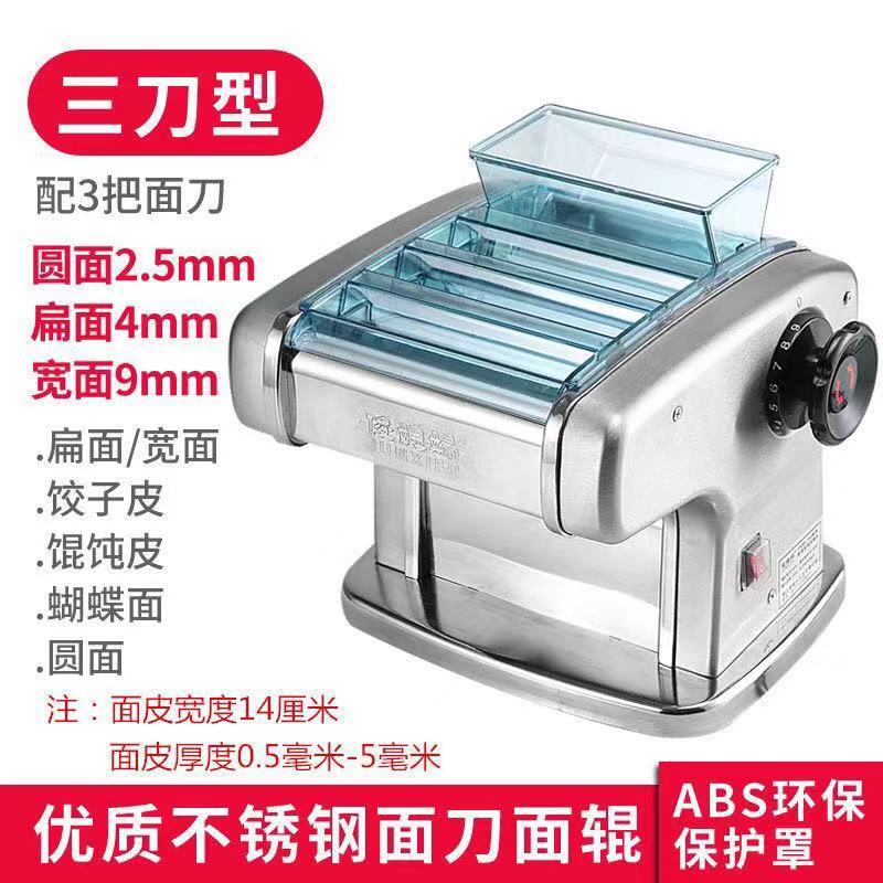 不锈钢家用面条机电动压面机擀面机饺子皮混沌皮机型面皮机|三刀款(面皮+2.5圆面+两种扁面