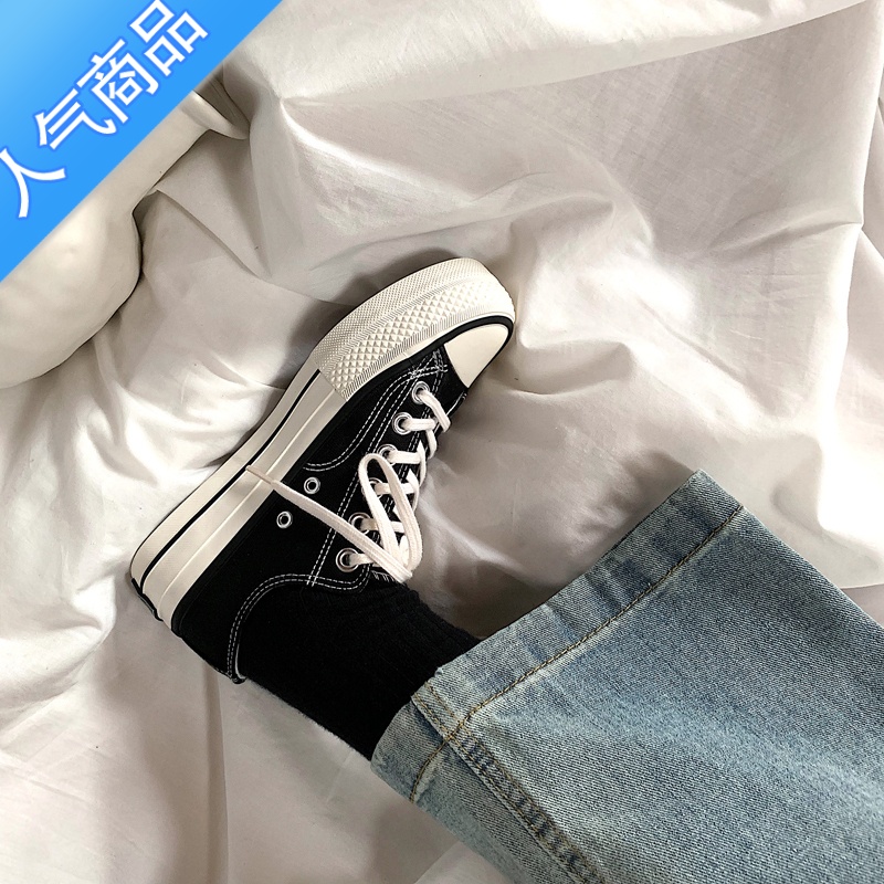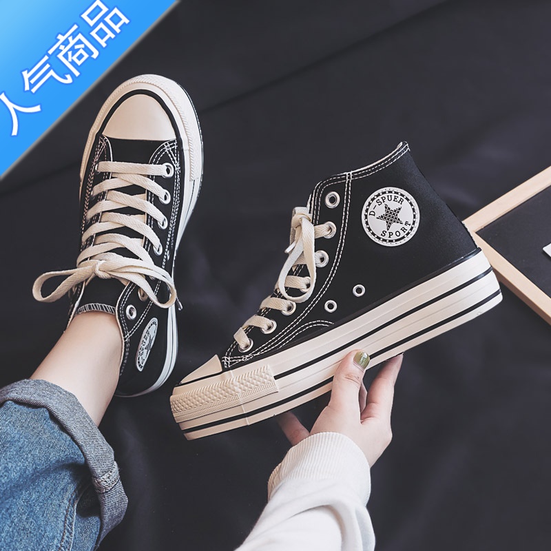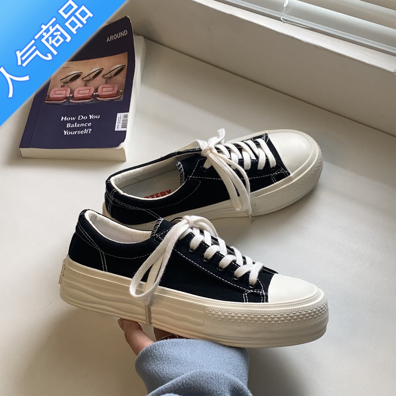 SUNTEK韩国厚底帆布鞋女2023春季新款百搭休闲透气增高板鞋松糕小白鞋子 黑色 35标准尺码¥284.00热销中 -