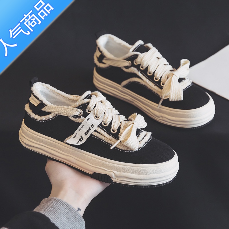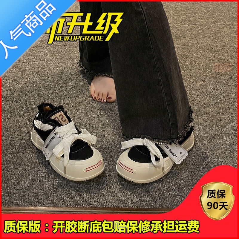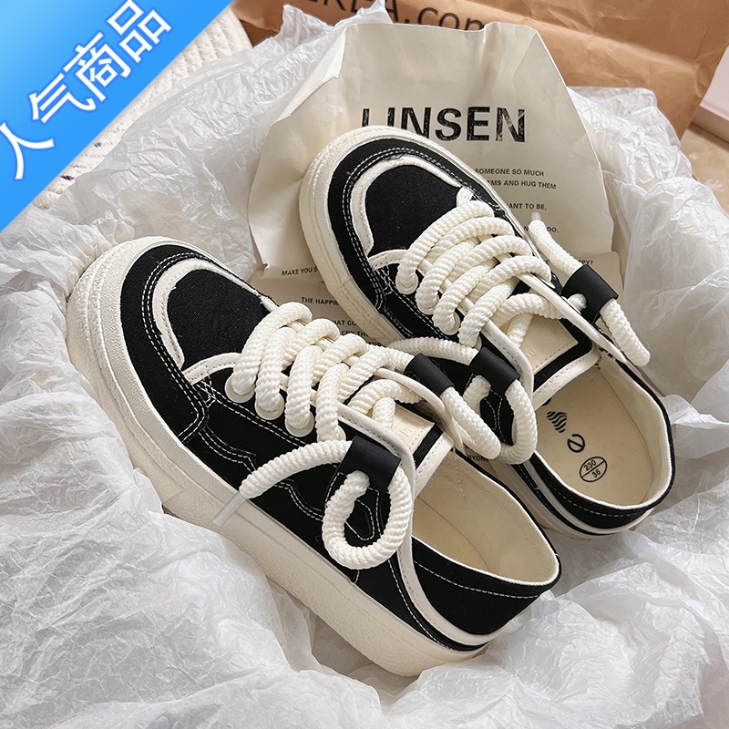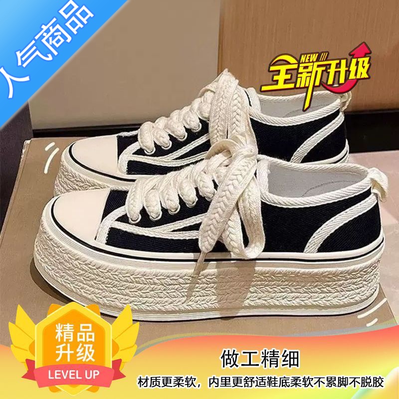 SUNTEK厚底帆布鞋女增高鞋2023新款小众百搭小白鞋复古休闲板鞋ins 黑色 40正常尺码¥82.44热销中 -
